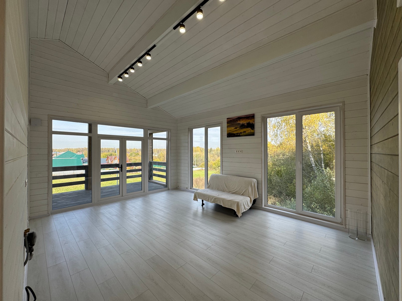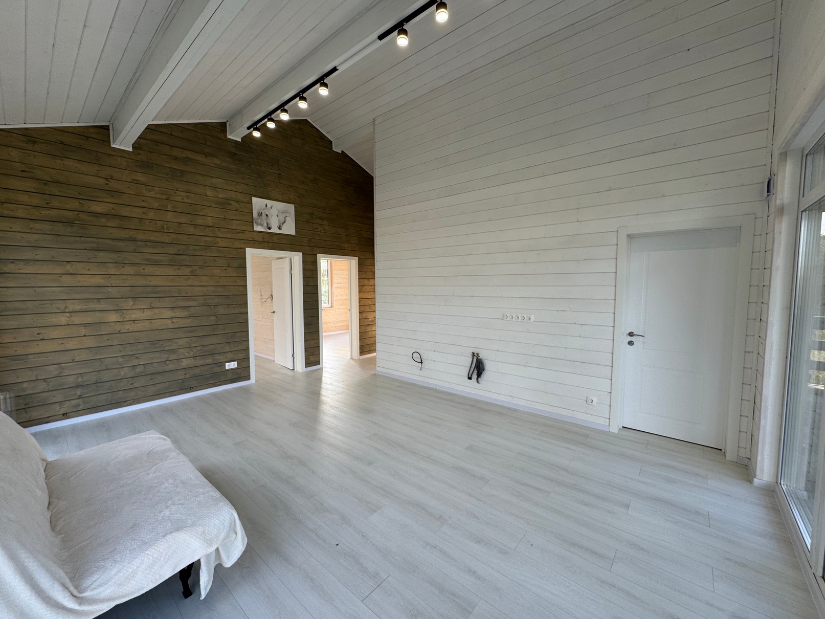 – Стены в гостиной, гостевой– имитация бруса 12 мм, окрашенный в белый цвет